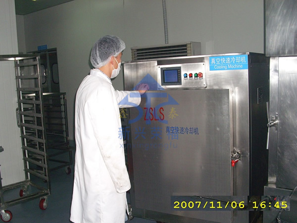 由于食品適宜細菌繁殖的溫度帶是 20--65 ℃ 。真空快速冷卻能夠迅速降低熟食品出鍋后的熱量,防止高溫下的食品氧化,同時由于食品在密封的真空環(huán)境下快速冷卻,可以避免空氣中細菌再次污染。 從而延長保質(zhì)期。