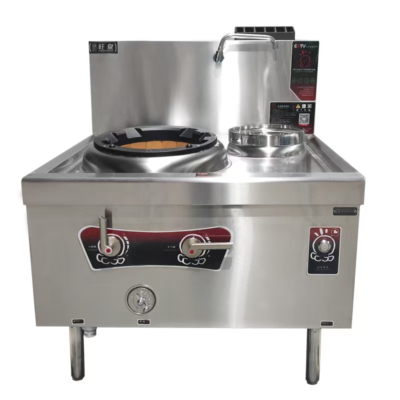 (2)爐外結構選用優質不銹鋼板,上設優質搖擺水龍頭,可配置炸筐架及不銹鋼調料板,并可根據需要訂做,可設計自然風式。